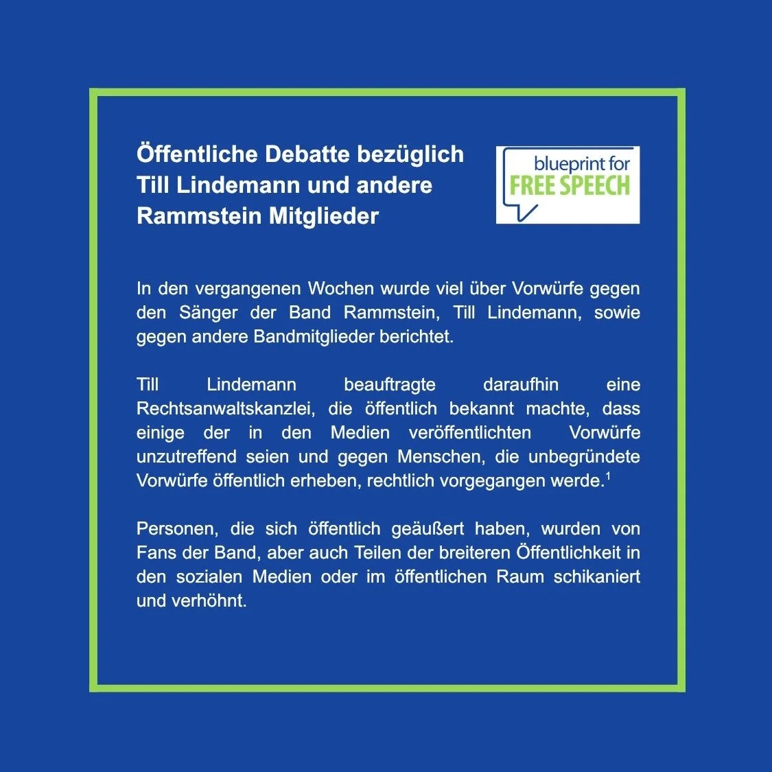 In den vergangenen Wochen wurde viel über Vorwürfe gegen den Sänger der Band Rammstein, Till Lindemann berichtet. Till Lindemann beauftragte daraufhin eine Rechtsanwaltskanzlei, die öffentlich bekannt machte, dass einige der in den Medien veröffentlichten Vorwürfe unzutreffend seien und gegen Menschen, die unbegründete Vorwürfe öffentlich erheben, rechtlich vorgegangen werde.